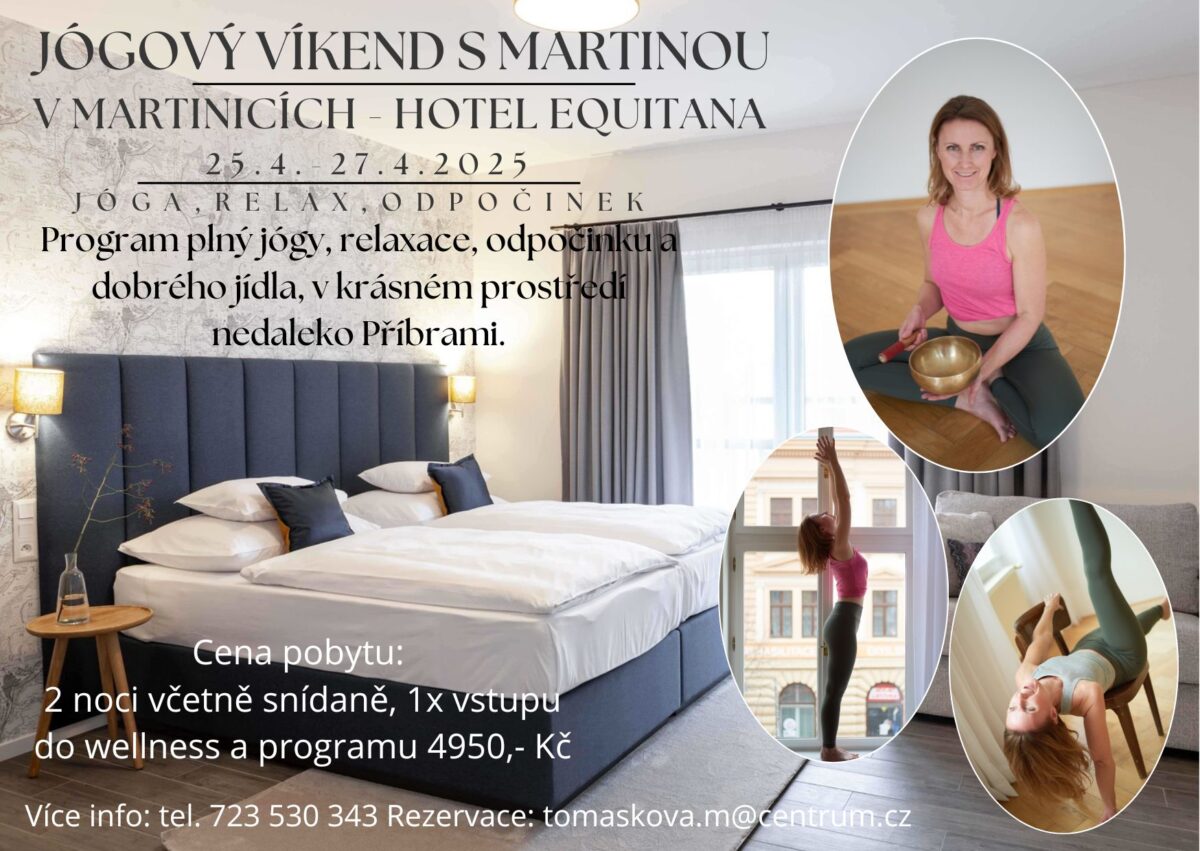 Jógové víkendy jsou skvělou příležitostí užít si jógovou terapii naplno a bez rušivých elementů. Dopřejte si intenzivní jógový zážitek a odcházejte odpočinutí, motivování a plní energie.Sledujte aktuální nabídku na letáku.